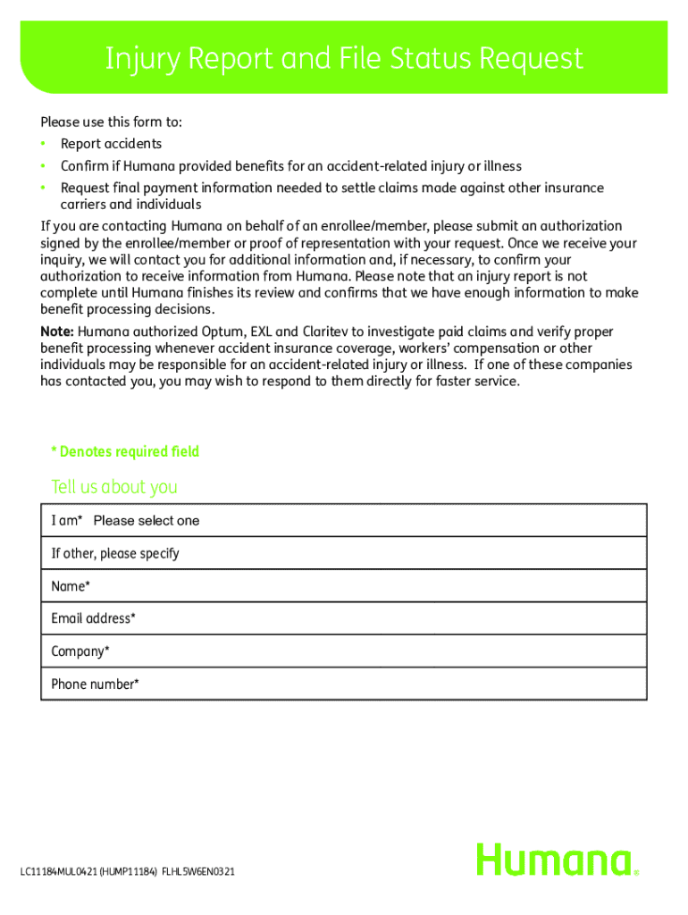Get the free Humana Injury Report and File Status Request