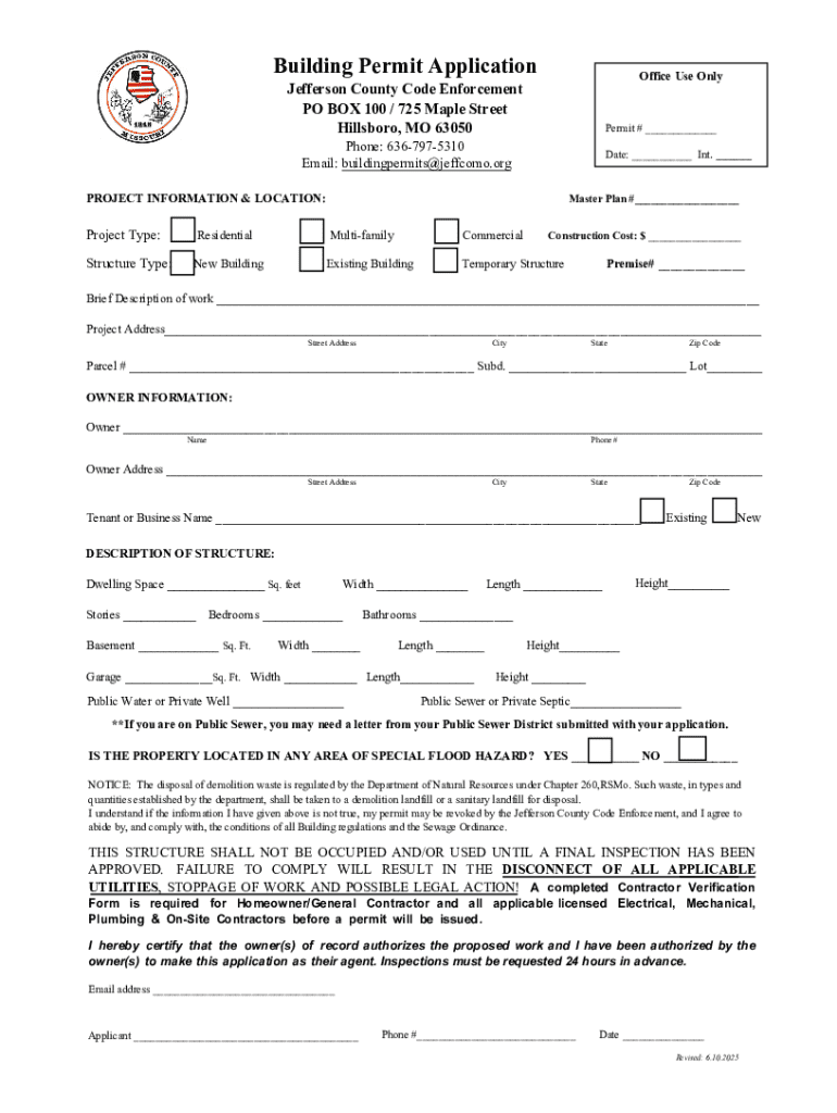 Get the free Jefferson County Building Permit Application