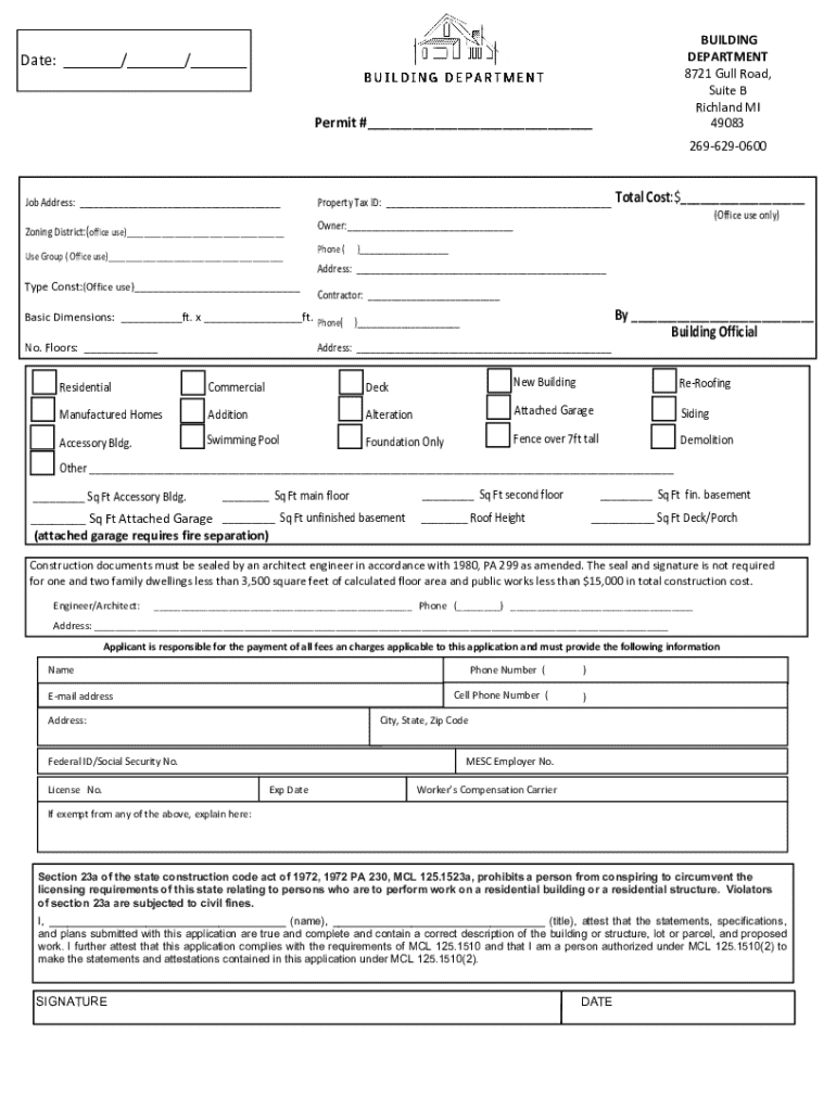 Get the free Michigan Building Permit Application