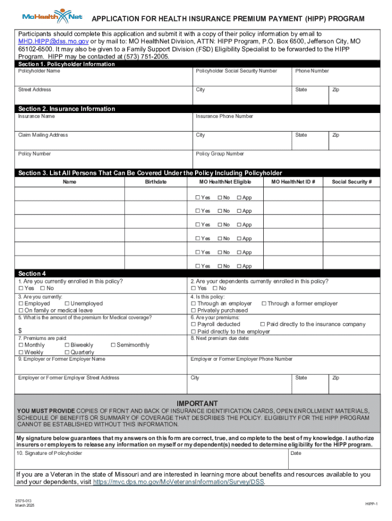 The Missouri HIPP application form is designed for user-friendliness and straightforward completion. Key features include:
