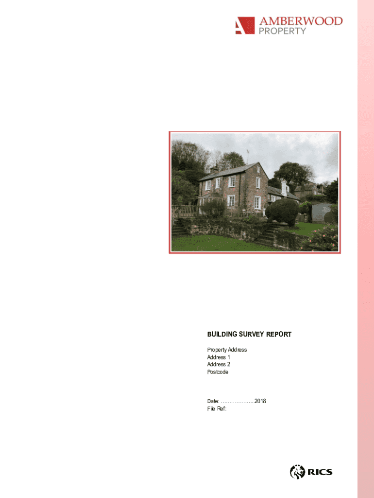 The Building Survey Report Template is a property inspection report used by surveyors to document the condition and details of a property.