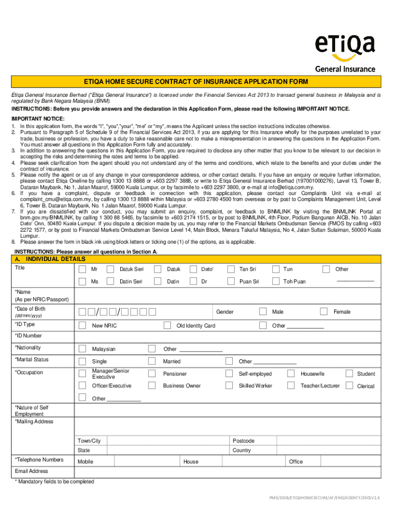 Get the free Etiqa Home Secure Insurance Application Form