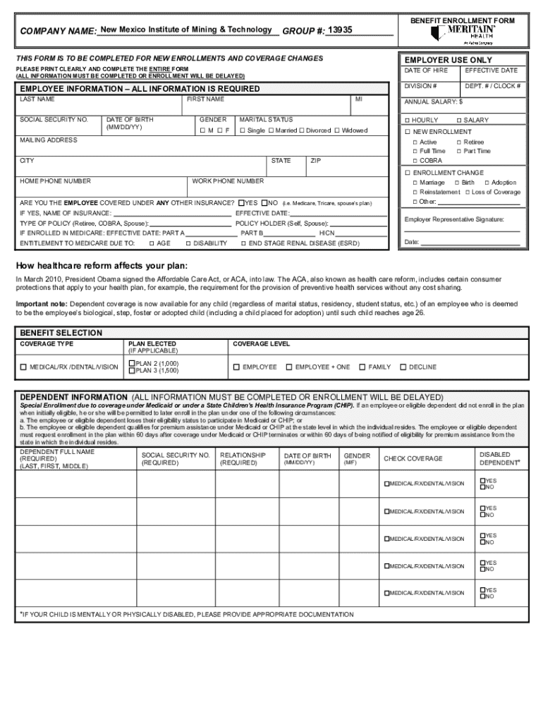 This form is specifically tailored for employees of the New Mexico Institute of Mining & Technology. Eligible individuals must meet the criteria set for healthcare benefits enrollment and updates. It's important to note that dependents play a critical role in the enrollment process, as their information is often required for comprehensive coverage.