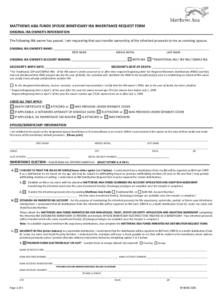 Get the free Spouse Beneficiary IRA Inheritance Request Form