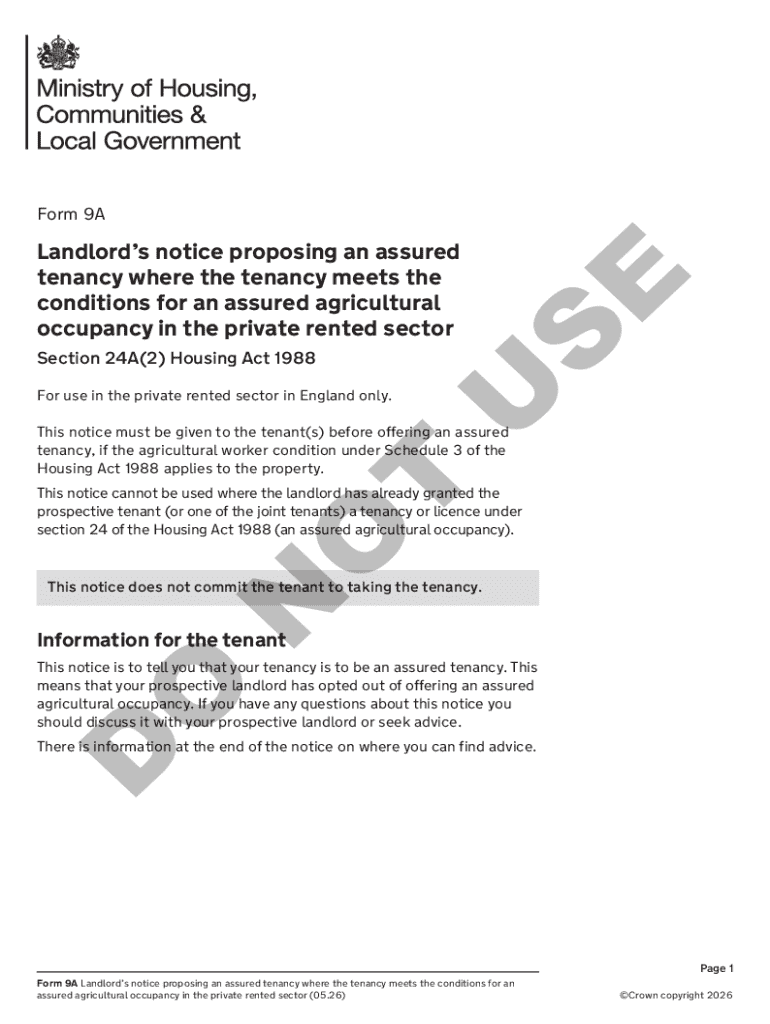 The Form 9A is designed for landlords and property managers operating within the assured tenancy framework in England. Those who need this form include: