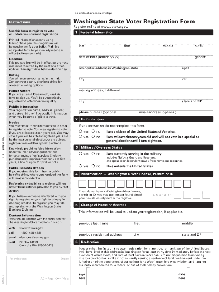 The Washington State Voter Registration is a form used by residents of Washington State to register to vote in elections.