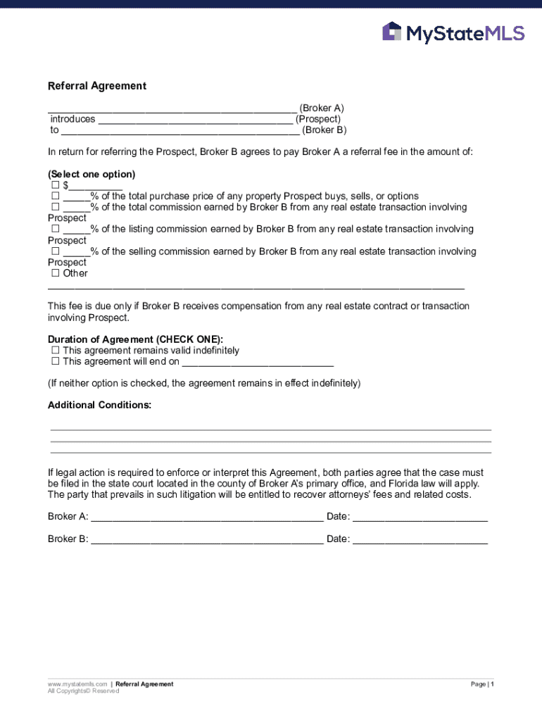 Get the free Referral Agreement