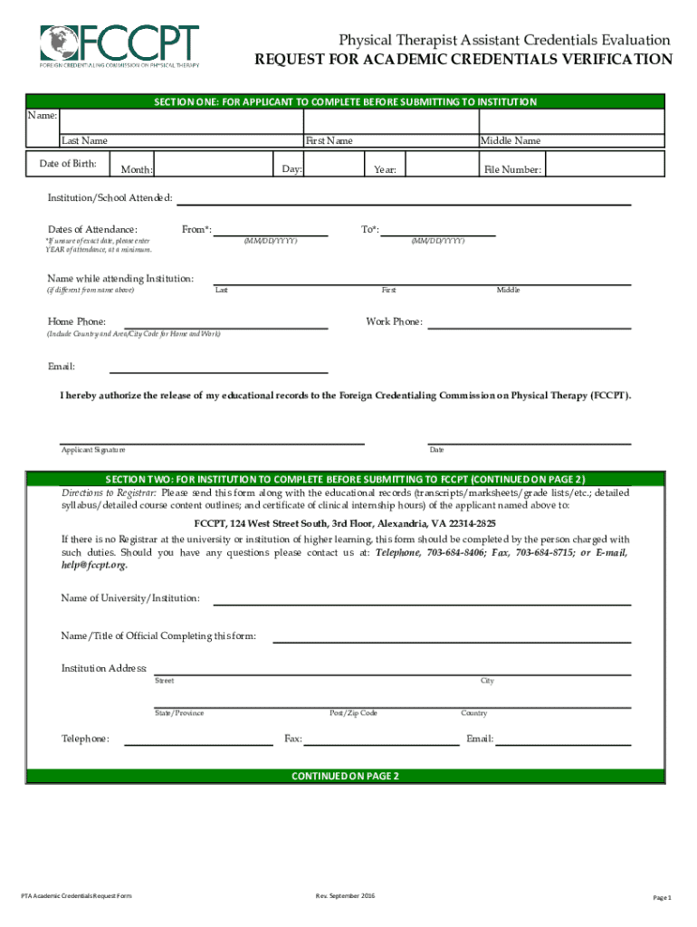 Get the free Physical Therapist Assistant Credentials Evaluation