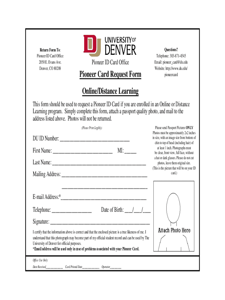 Get the free Pioneer ID Card Request Form