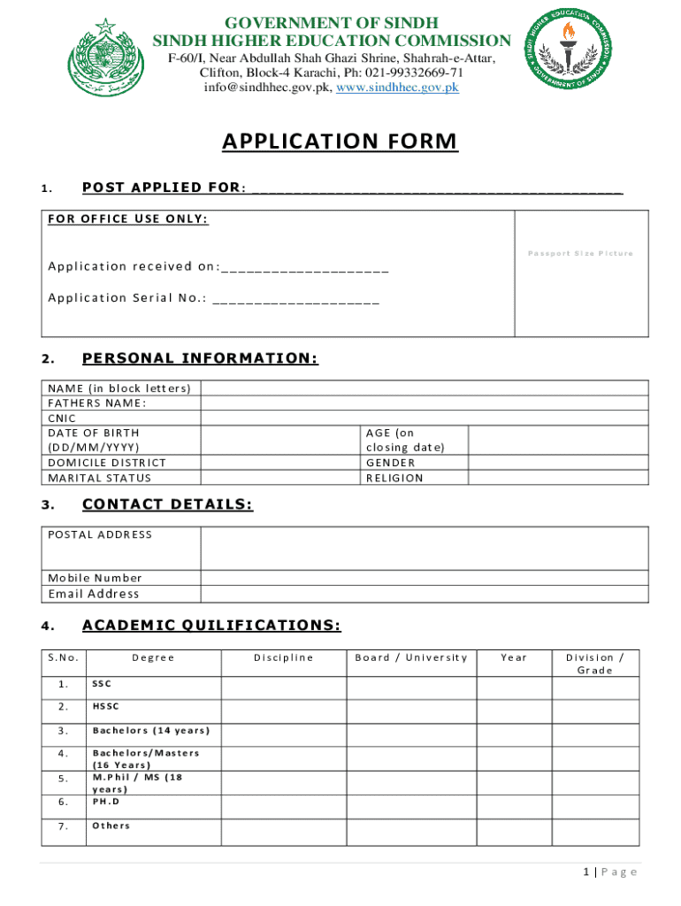 The Sindh Higher Education Commission Form is an application document used by individuals and institutions seeking higher education funding and resources in Sindh, Pakistan.