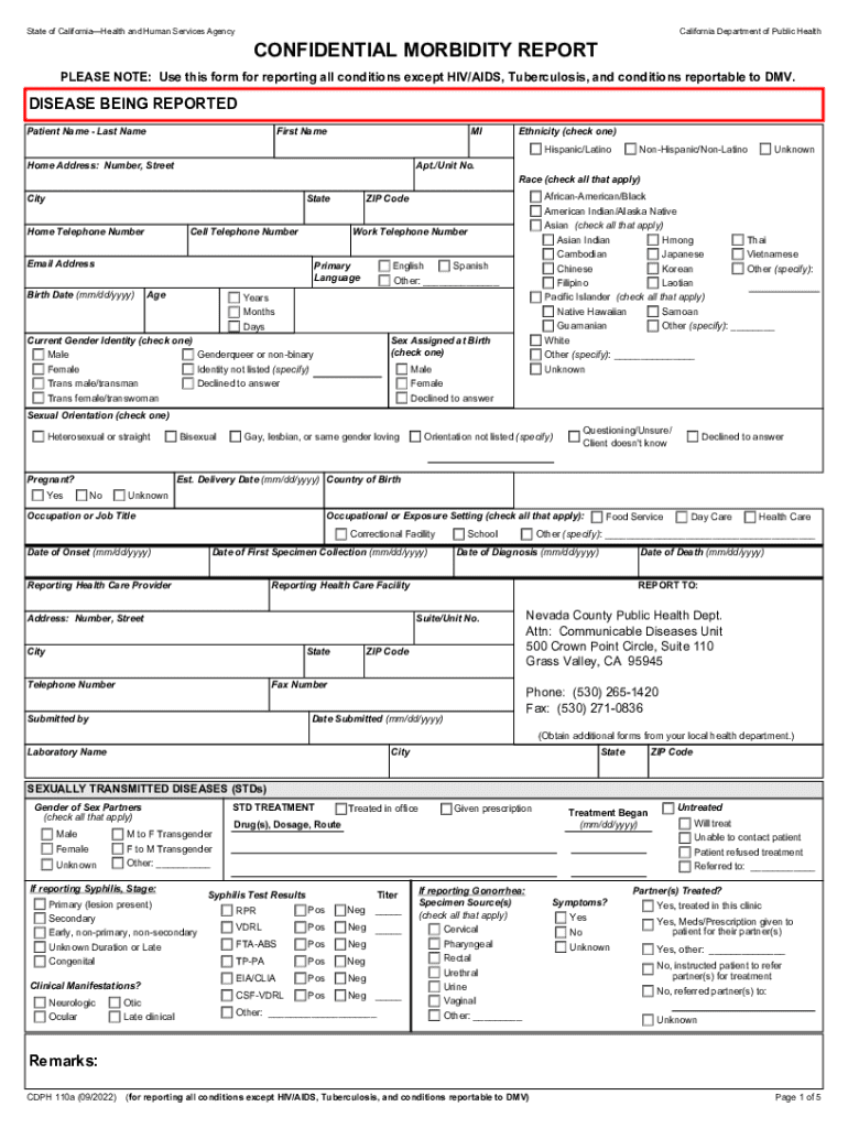 Processing times for the California Confidential Morbidity Report depend on the local health department's workflow but typically take a few weeks. Check with local authorities for updates.