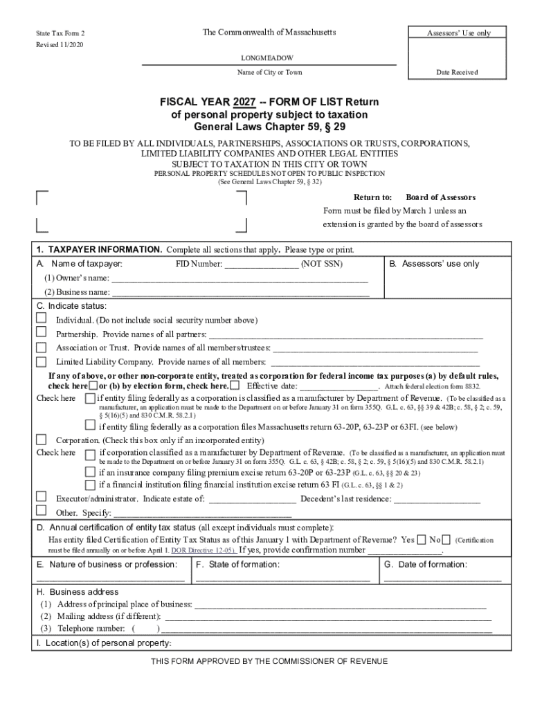 The due date for submitting the Massachusetts Personal Property Tax form typically aligns with the state’s tax filing deadlines. Check local regulations or consult with a tax professional for specific dates.