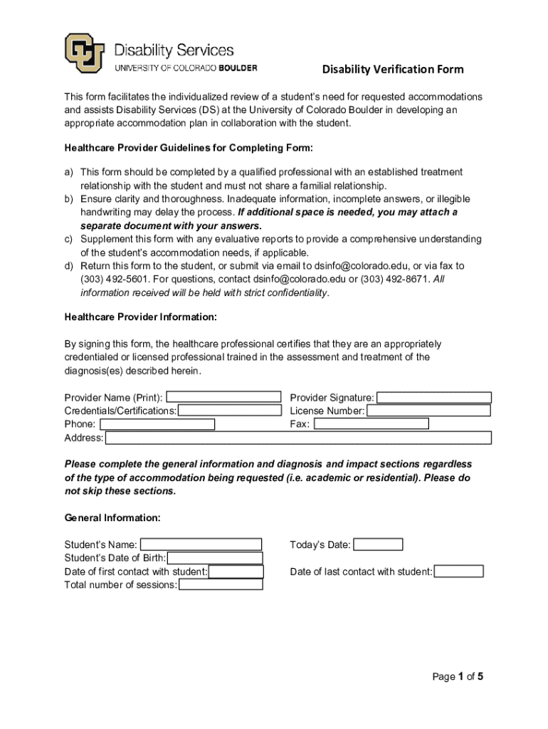 The Disability Verification Form is an official document used by individuals to verify their eligibility for disability benefits and services.