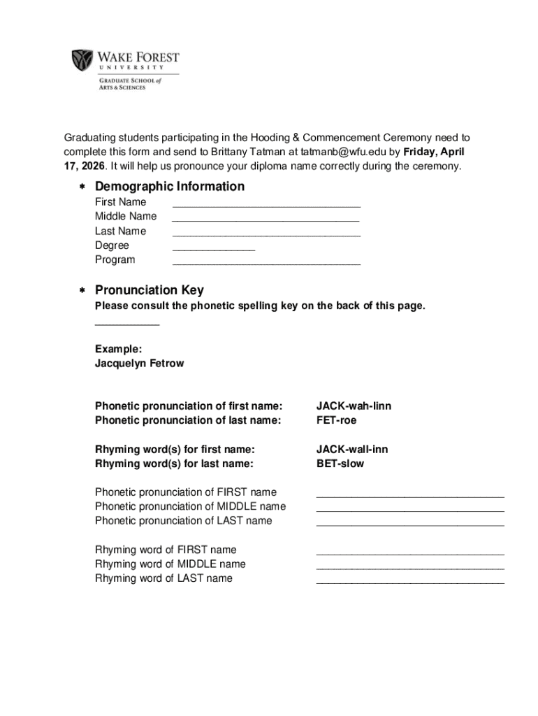 Any graduate who is participating in a graduation ceremony should submit this form to ensure their name is pronounced correctly.