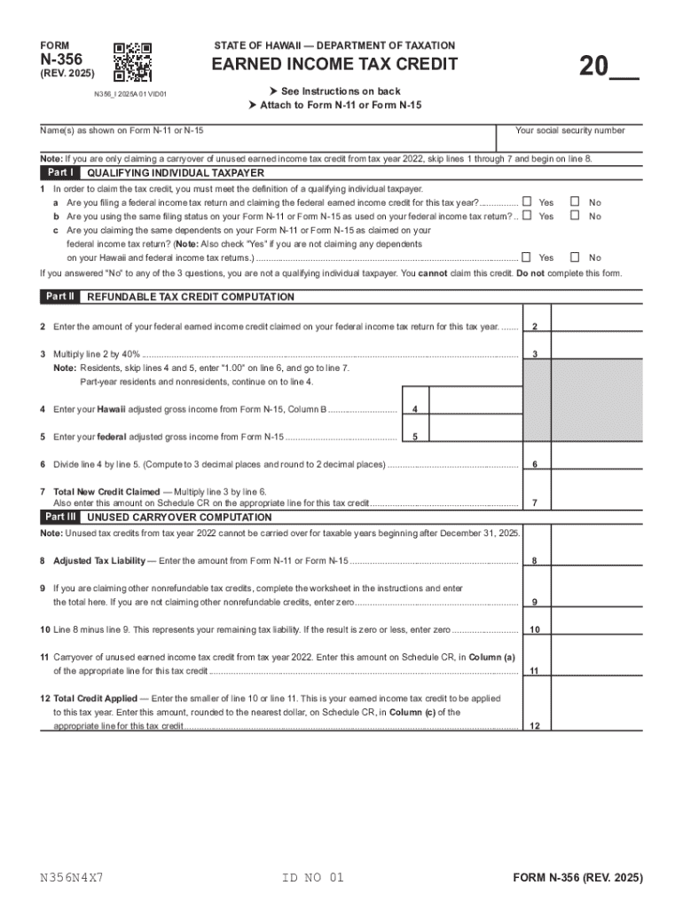 Get the free Hawaii Earned Income Tax Credit Form N-356