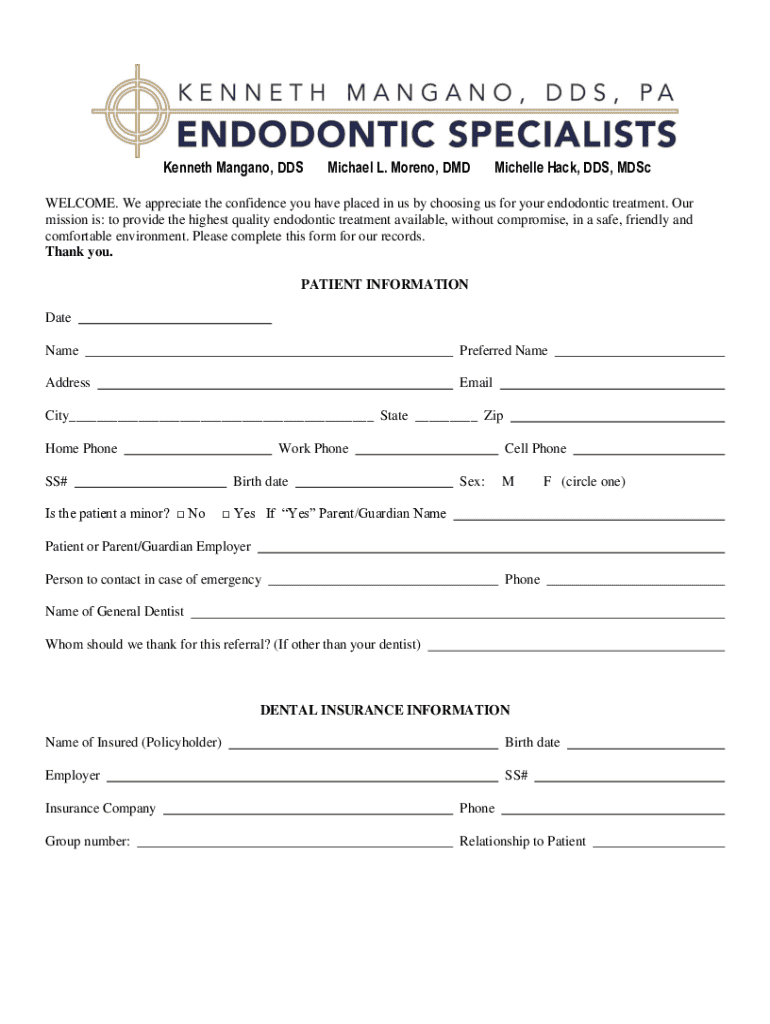 Get the free Endodontic Treatment Patient Information Form