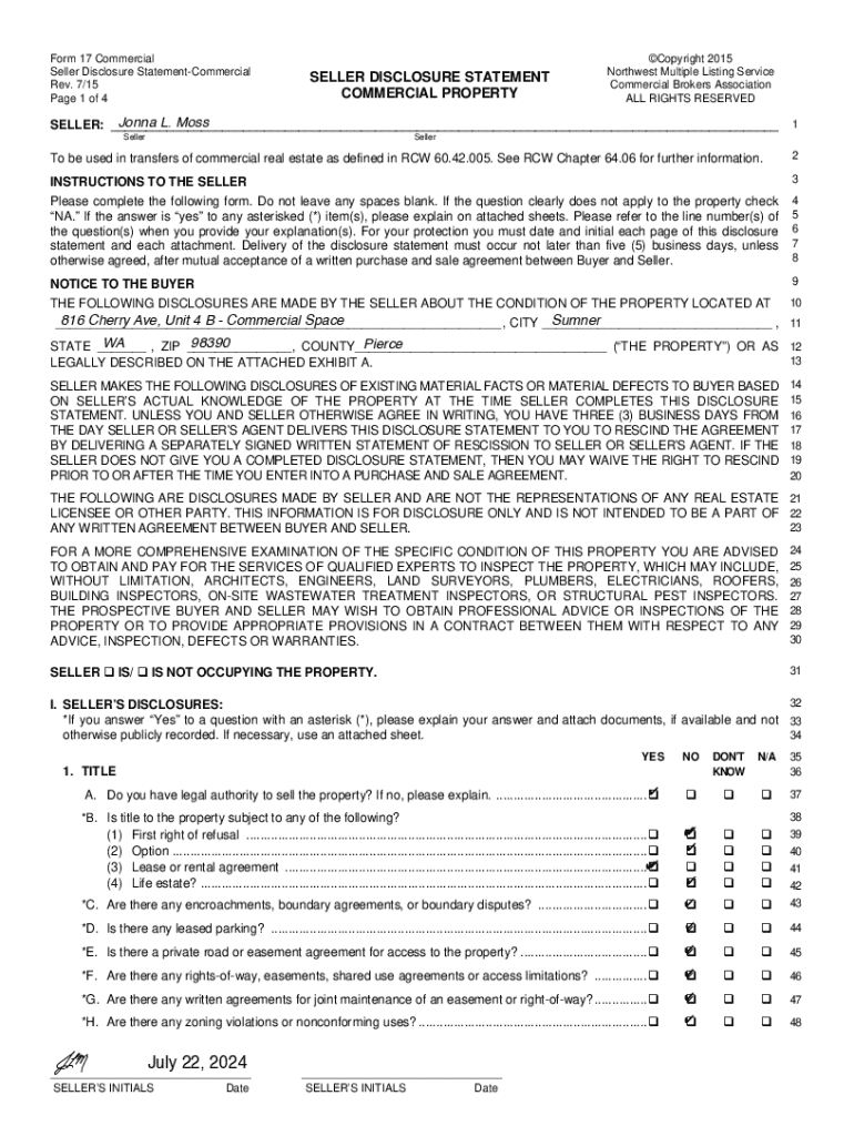 Get the free Commercial Property Seller Disclosure Statement