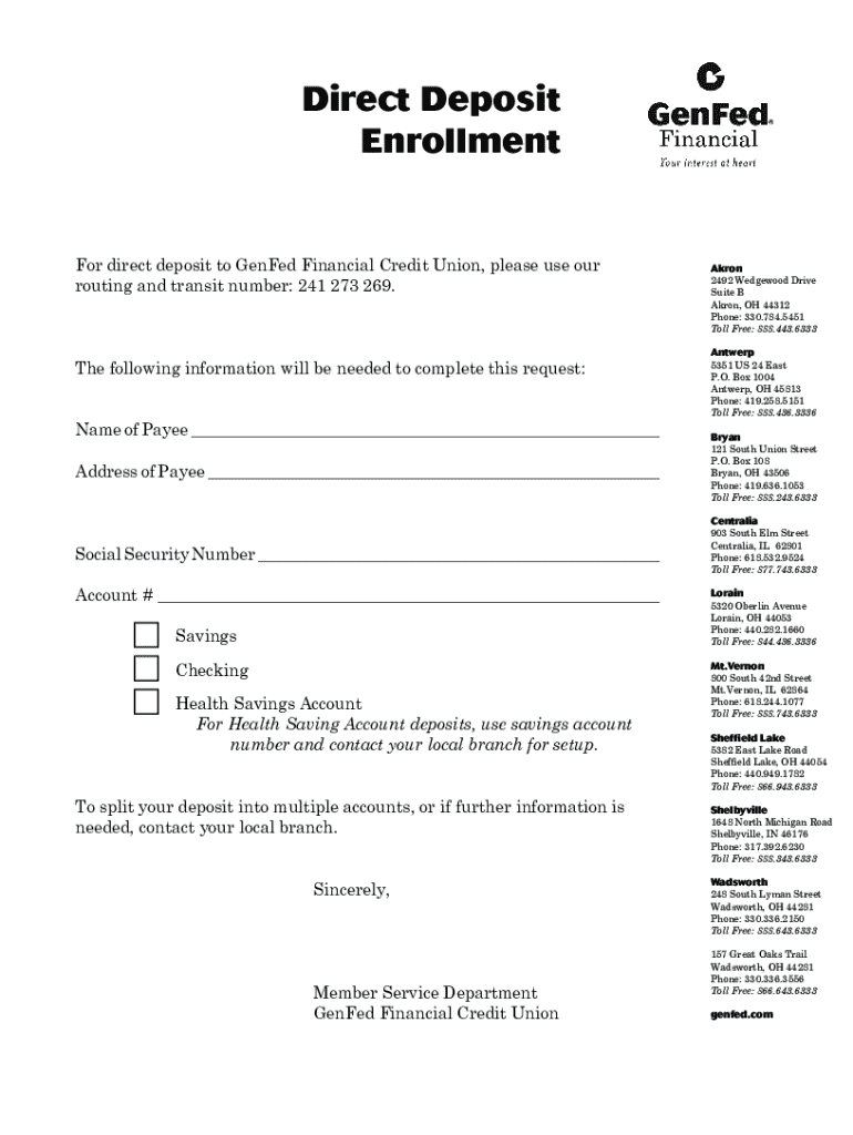 Get the free Direct Deposit Enrollment Form