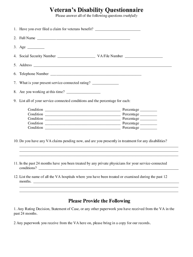 Get the free Veteran\'s Disability Questionnaire