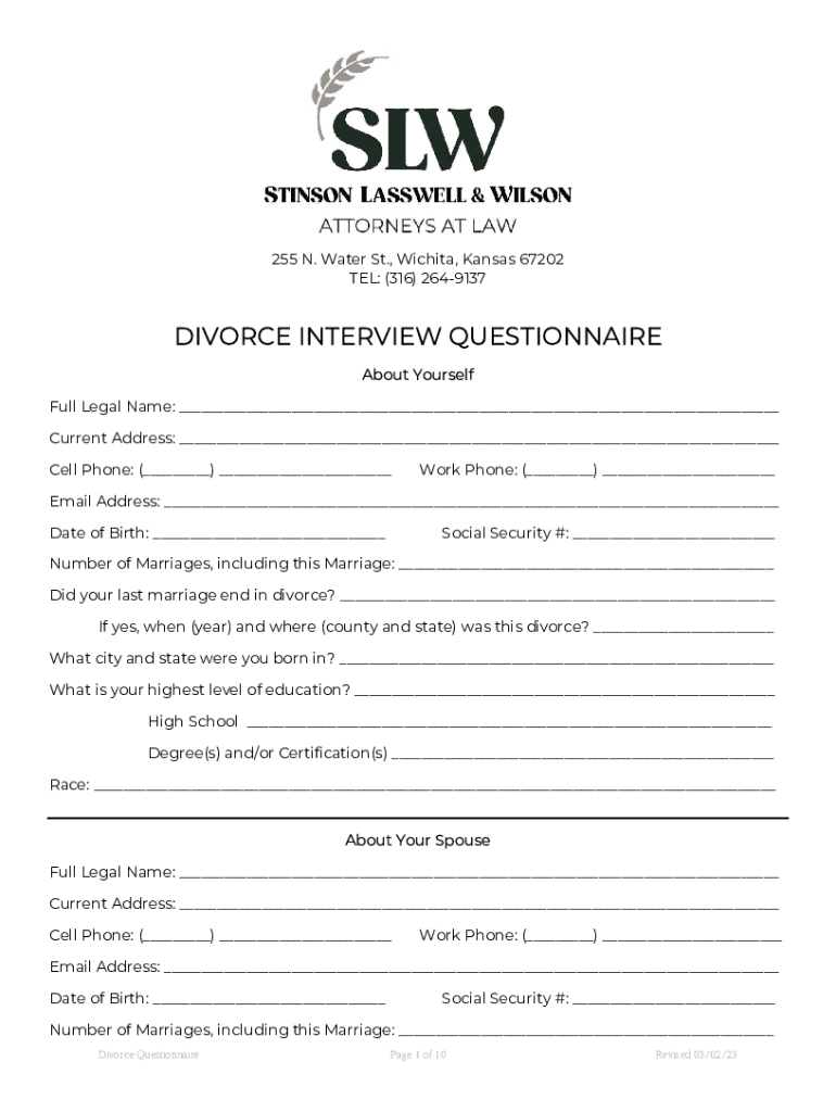 Get the free Divorce Interview Questionnaire