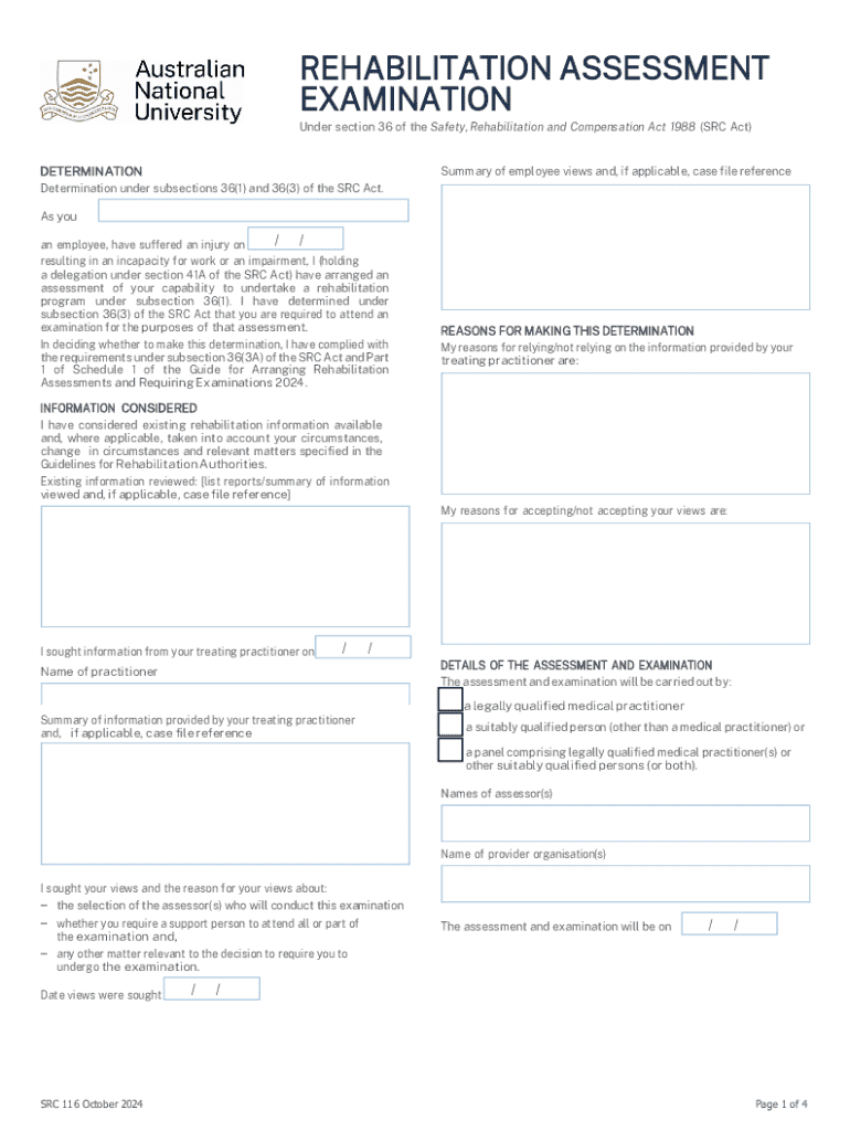 Get the free Rehabilitation Assessment Examination Determination