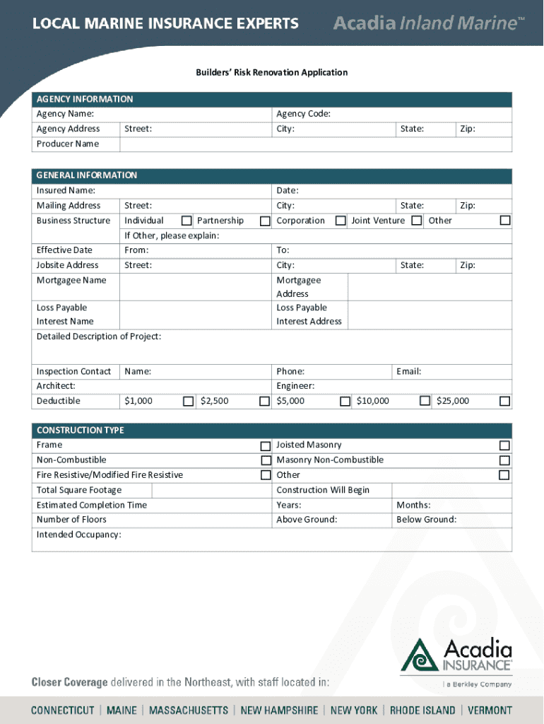 Get the free Builders Risk Renovation Application