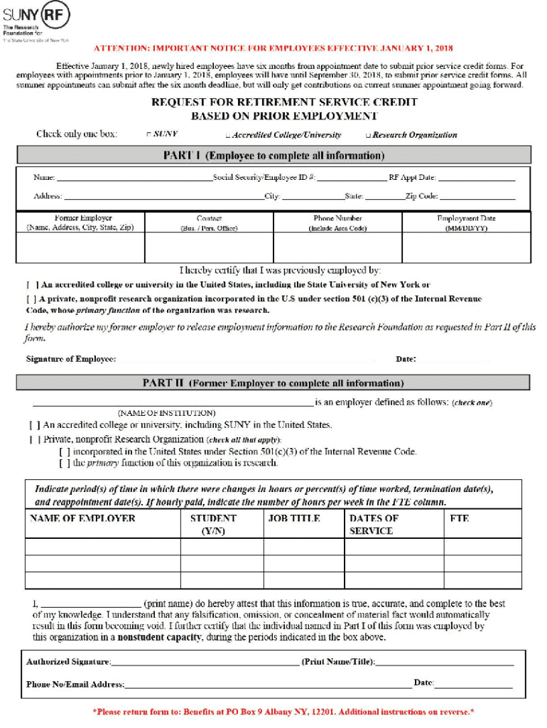 Get the free Request for Retirement Service Credit