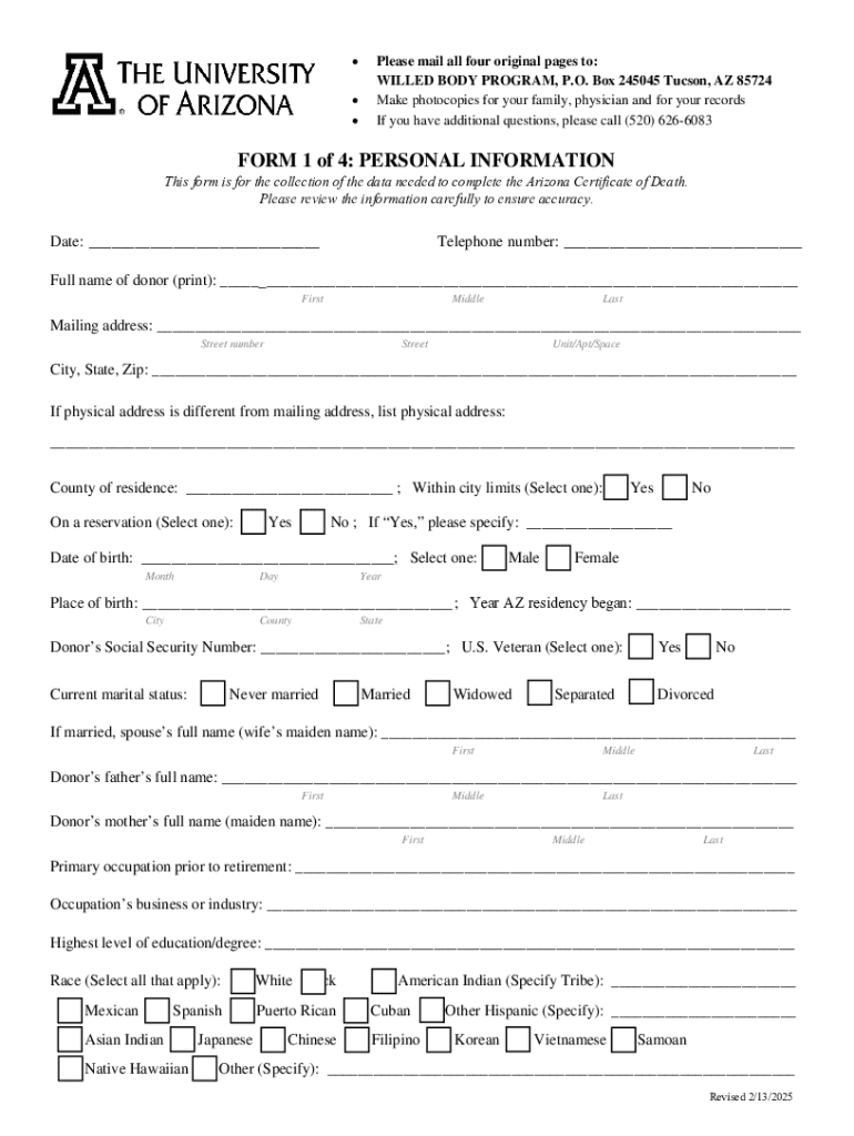 Get the free Arizona Anatomical Donation Form