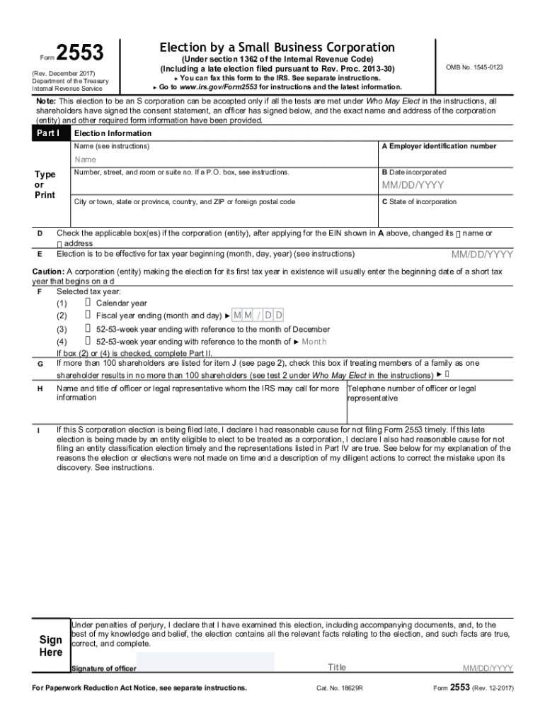 The Form 2553 S Corporation is a tax document used by small business owners to elect S Corporation status for federal tax purposes.