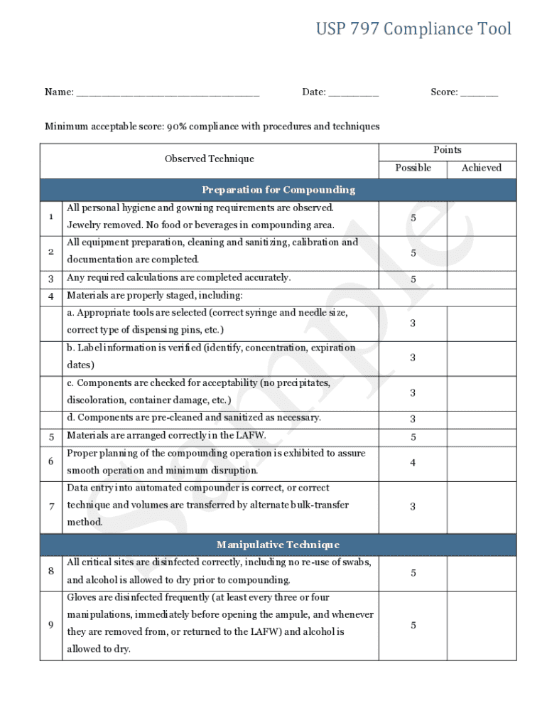 The USP 797 Compliance Tool is a digital document used by healthcare facilities to ensure compliance with sterile compounding standards established by the United States Pharmacopeia.