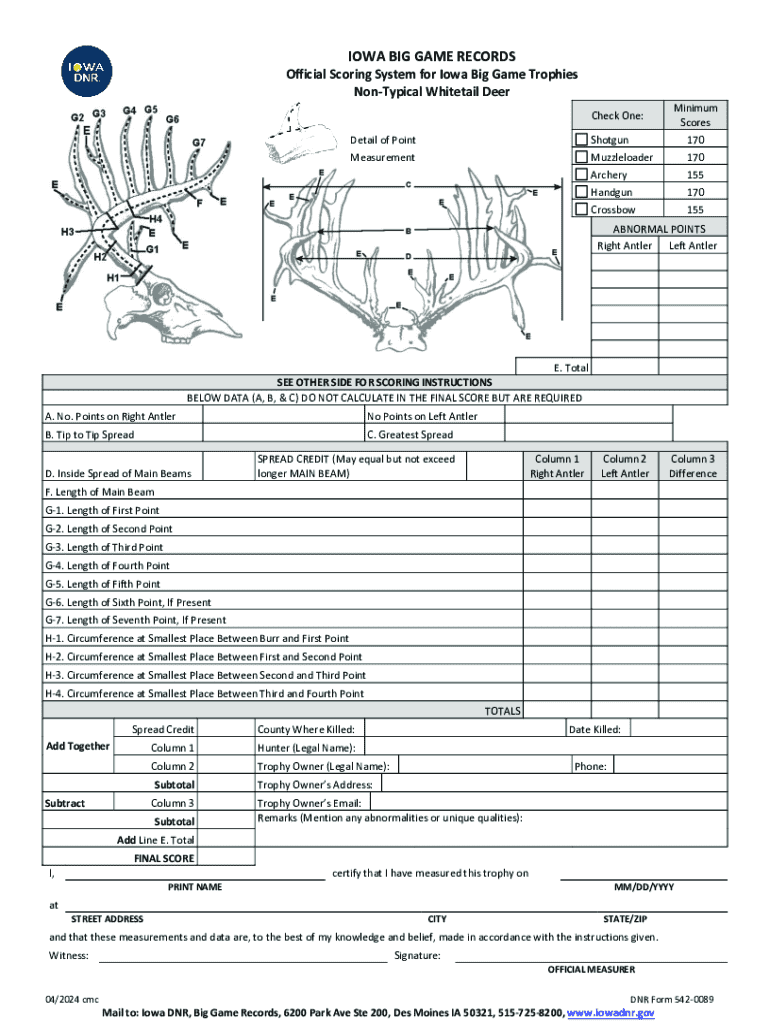 Get the free Iowa Non-Typical Whitetail Deer Scoring Form