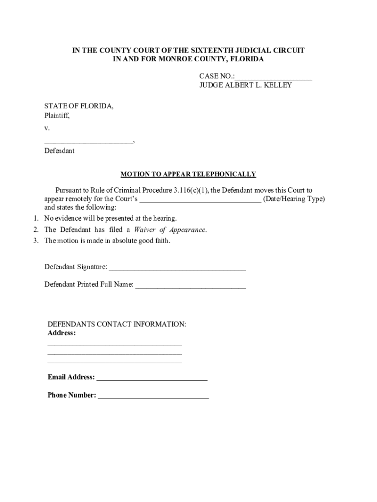 Get the free Motion to Appear Telephonically