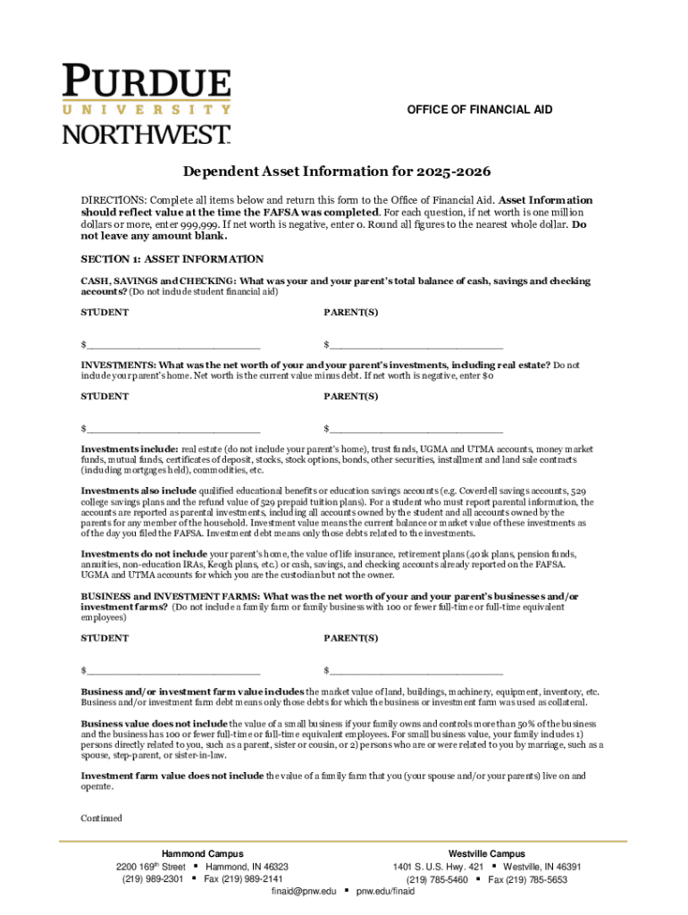 Get the free Dependent Asset Information Form