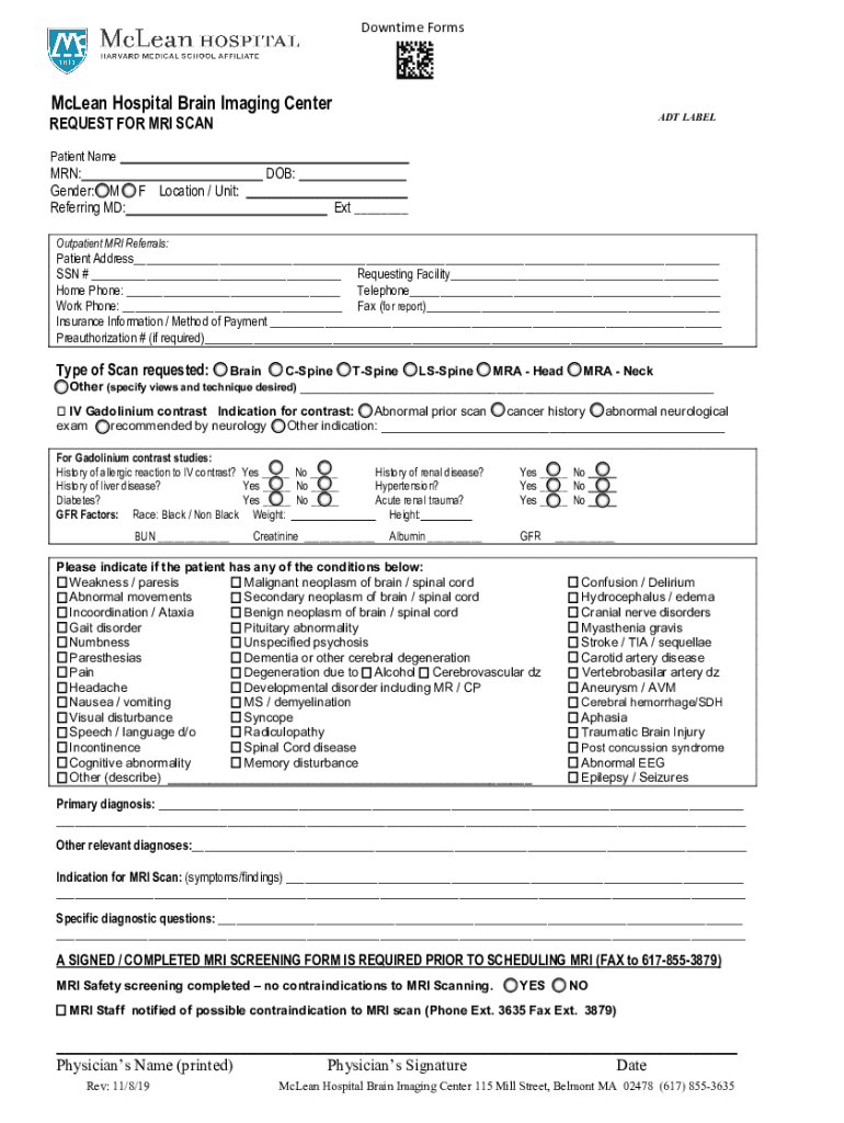 To submit the MRI scan request form, certain eligibility criteria must be met. Primarily, the individual requesting the MRI must be assessed by a qualified healthcare professional who determines the necessity of the imaging based on the patient's medical history and symptoms.