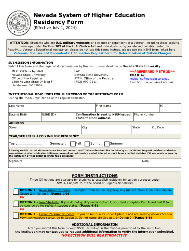 Get the free Nevada Residency Form for Tuition Purposes