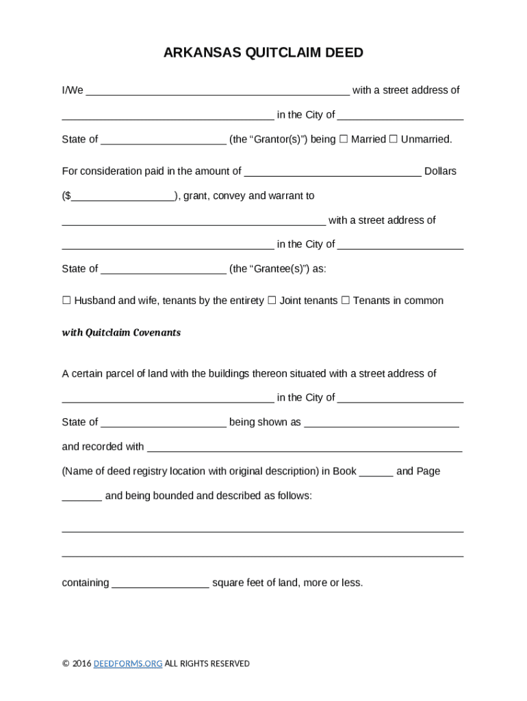 Get the free Arkansas Quitclaim Deed