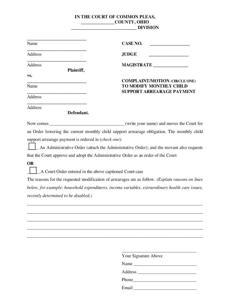 Get the free Complaint/Motion to Modify Child Support Arrearage Payment