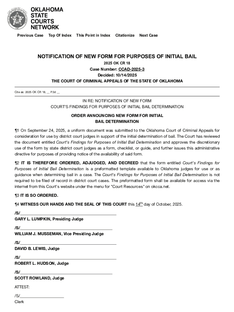 Access the Oklahoma Initial Bail Determination form through the relevant platform.