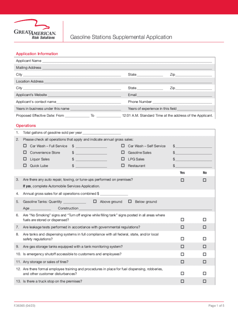 The gasoline stations supplemental application is a form used by gasoline station operators to provide additional information for insurance applications.