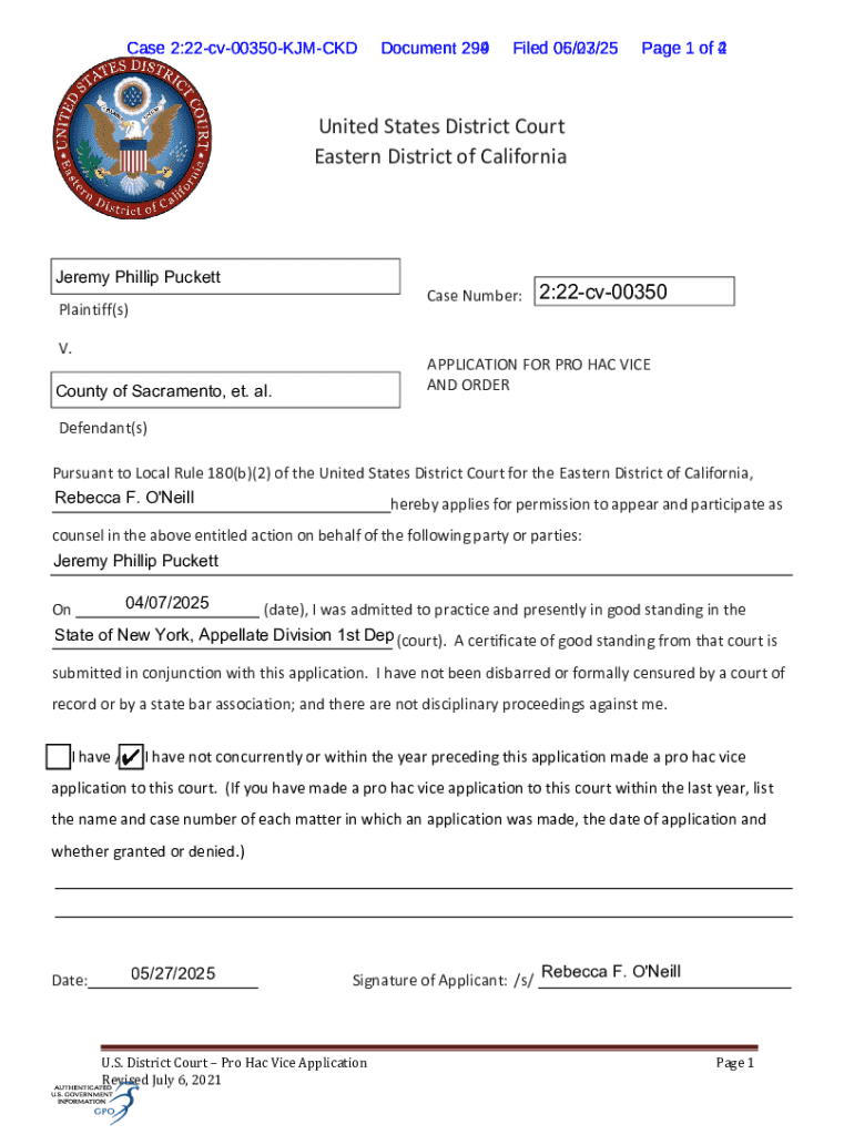 Get the free Pro Hac Vice Application