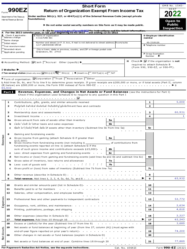 Get the free Form 990-EZ 2022