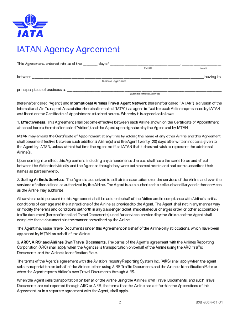 Get the free IATAN Agency Agreement