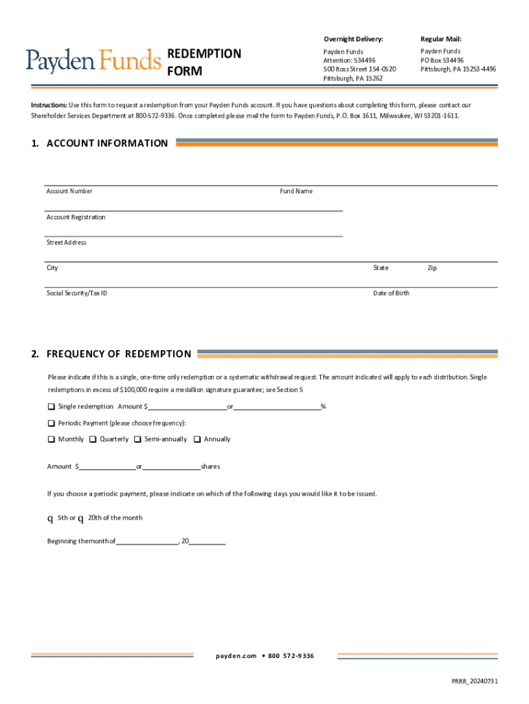 Once the Payden Funds Redemption Request is completed, there are several methods available for submission: