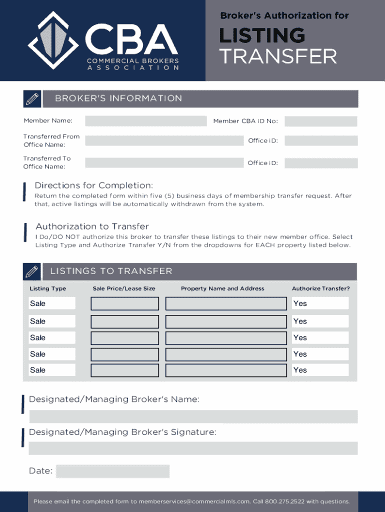 Get the free Commercial MLS Listing Transfer Form