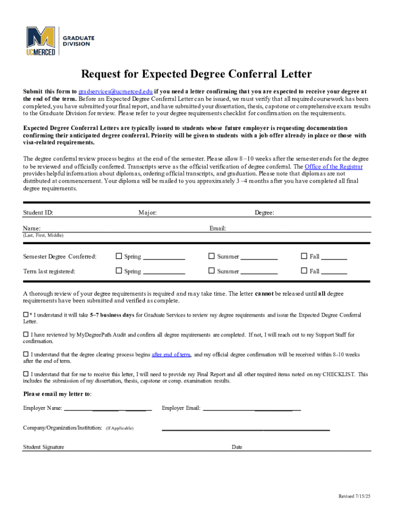 Get the free Expected Degree Conferral Letter Request Form