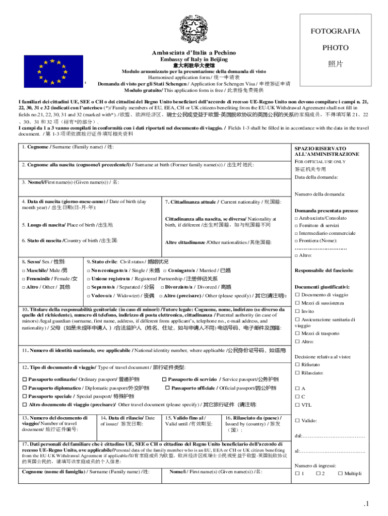 Il modulo di domanda per il visto Schengen è un documento ufficiale utilizzato da viaggiatori che intendono visitare paesi Schengen per turismo o affari.