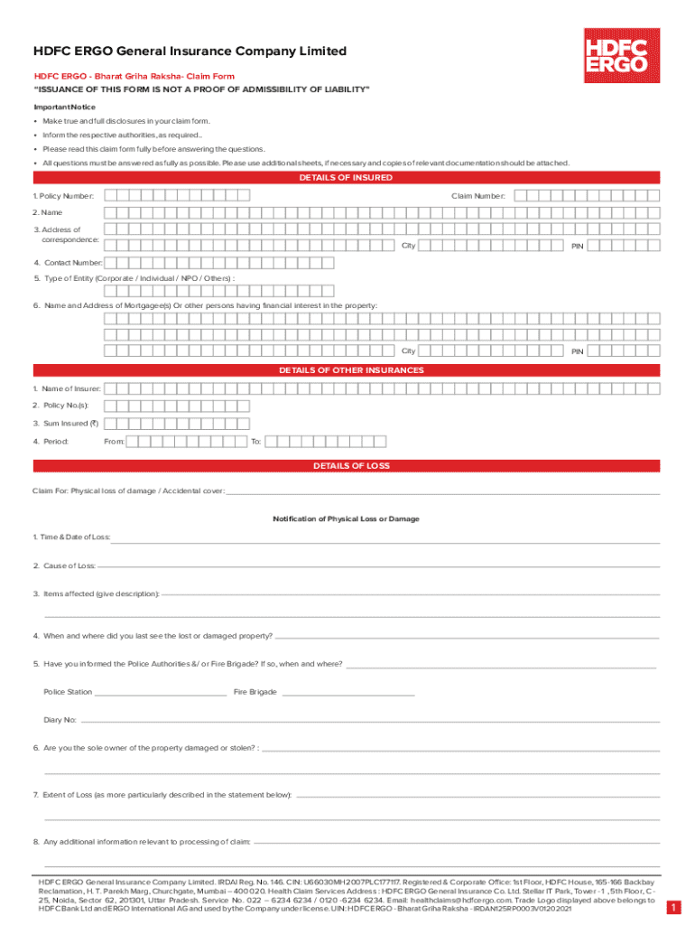 Get the free HDFC ERGO Bharat Griha Raksha Claim Form