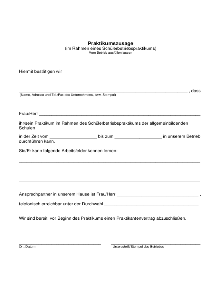 Ein Beispiel einer ausgefüllten deutschen Praktikumsvereinbarung dient als nützliche Referenz für Benutzer. Anhand des Beispiels können verschiedene Abschnitte erläutert werden, um die Visualisierung der vollständigen Form zu unterstützen. Dies hilft insbesondere neuen Praktikanten und Unternehmen, sich im Prozess besser zurechtzufinden.
