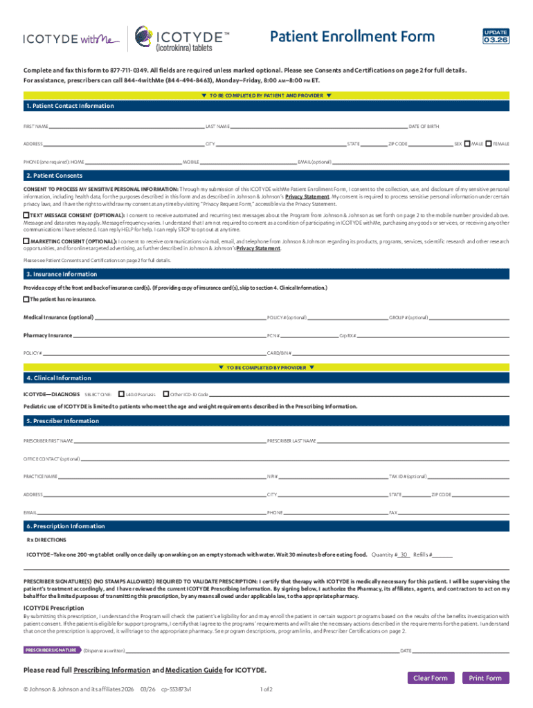 The icotyde patient enrollment form is a document used by healthcare providers to register patients seeking enrollment in the Icotyde program.
