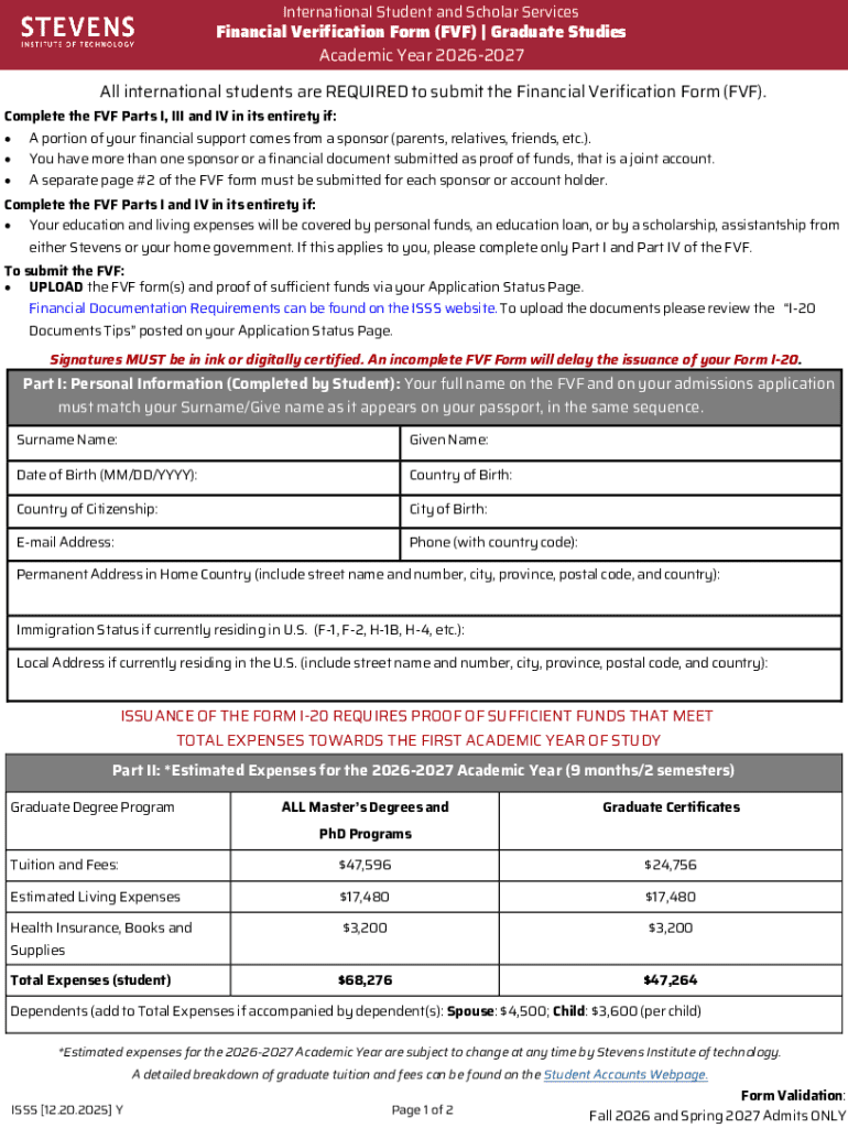 Get the free Financial Verification Form for International Students